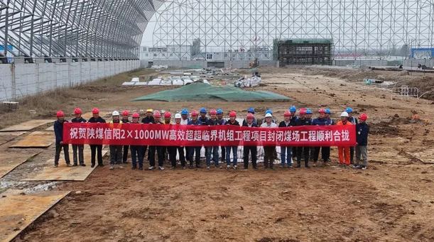 陜煤信電2×1000MW機組工程封閉煤場大跨度網(wǎng)架項目順利合攏